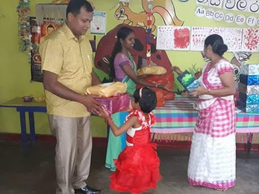 පෙර පාසල් දරුවන් සඳහා තෑගි හා පාසල් උපකරණ ලබා දීම.